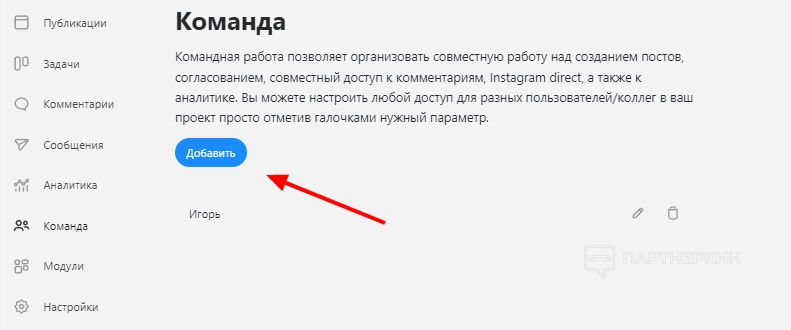Работа в команде позволяет организовать совместную работу над созданием публикаций. Клиент сервиса может настроить любой доступ для разных коллег. Как это сделать: