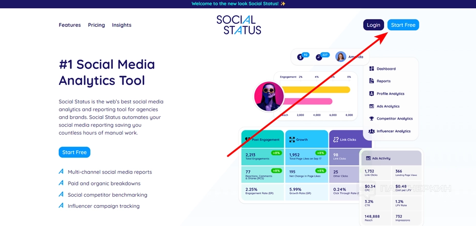 - На главной странице нажмите на кнопку Start Free .