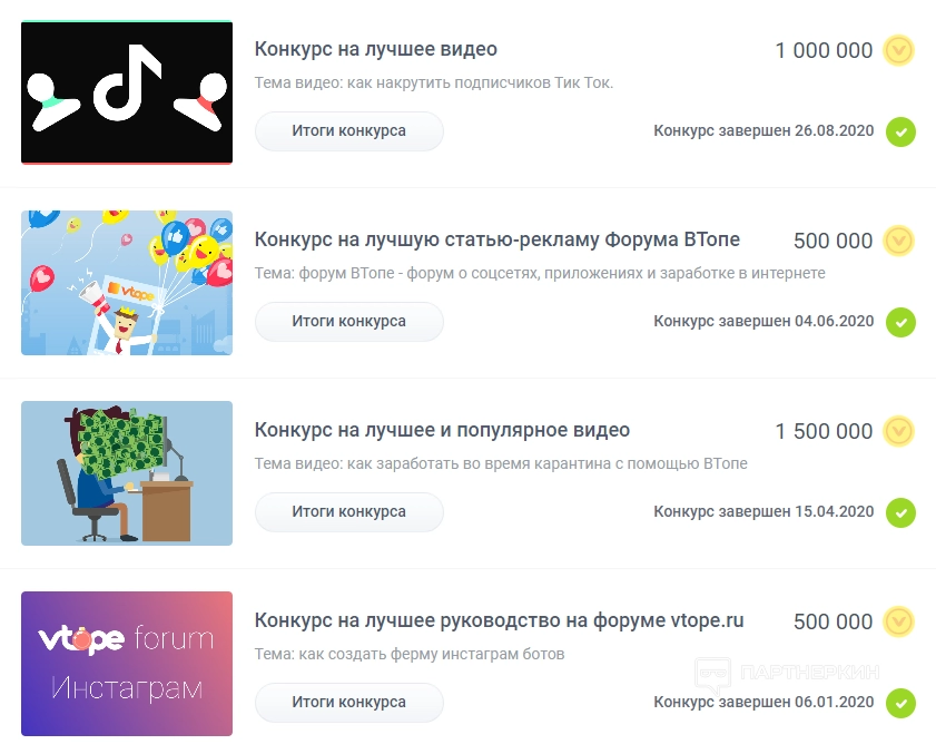 Пользователи могут участвовать в конкурсах и выигрывать поинты. Примеры конкурсов: