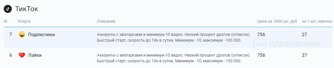Стоимость услуг для TikTok: