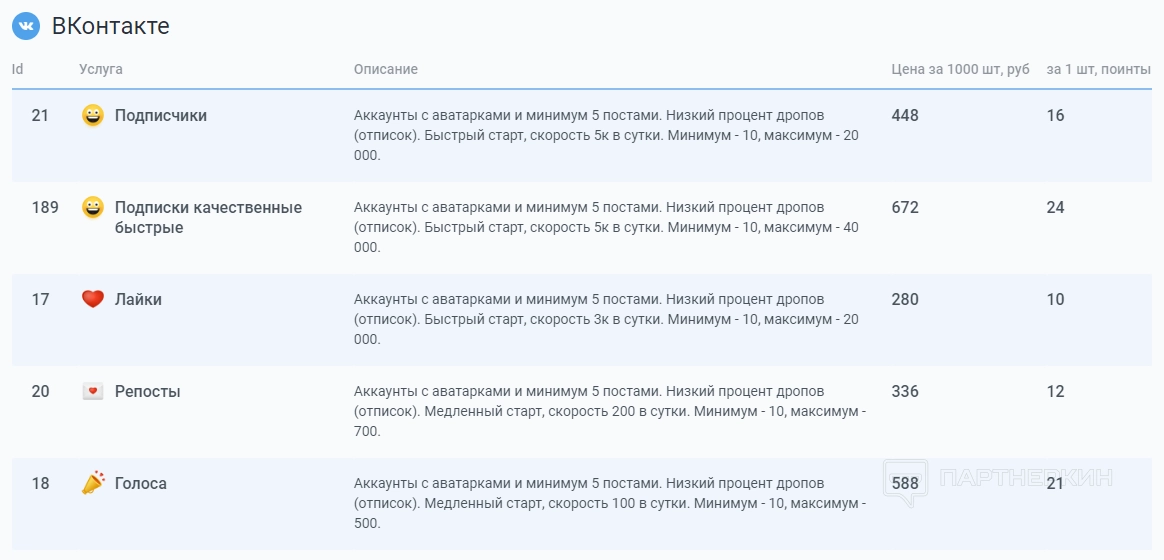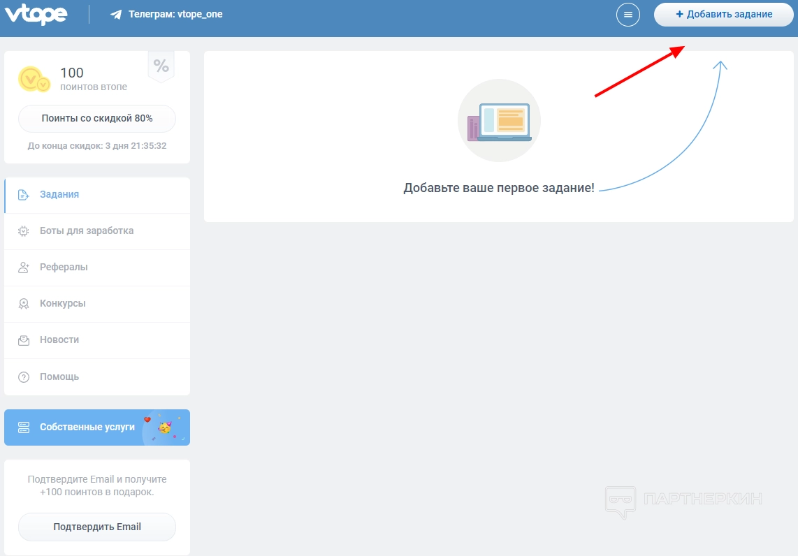 Поинты — это валюта сервиса. Они нужны для добавления заданий на раскрутку. Получить их можно четырьмя способами: