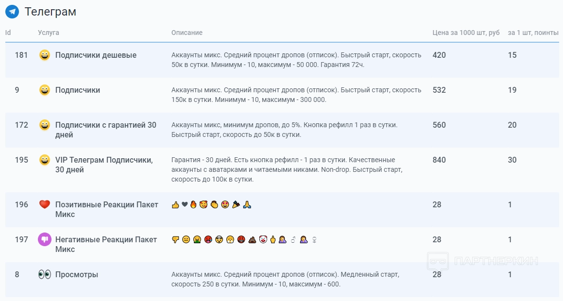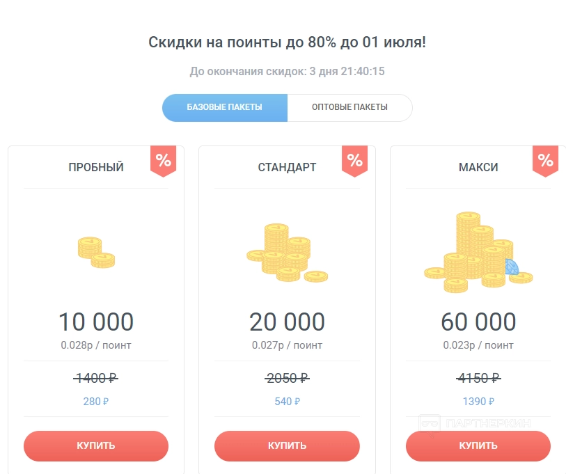 Чем больше пакетов поинтов, тем ниже цены. Сервис