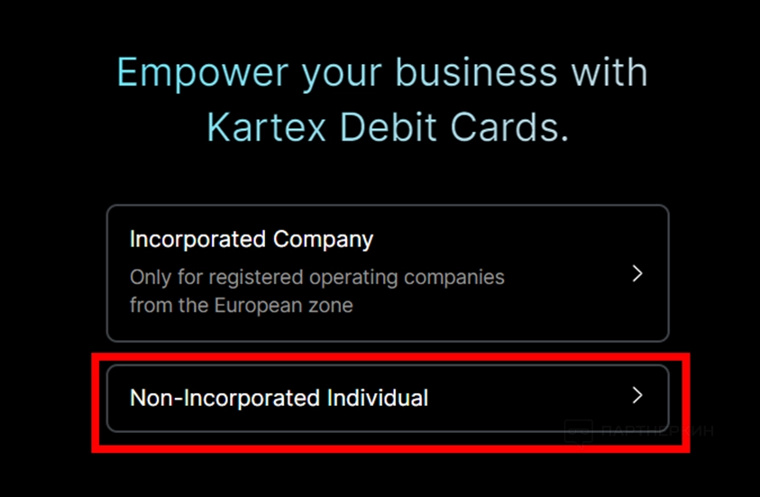 2. Выберите Non-Incorporated Individual.