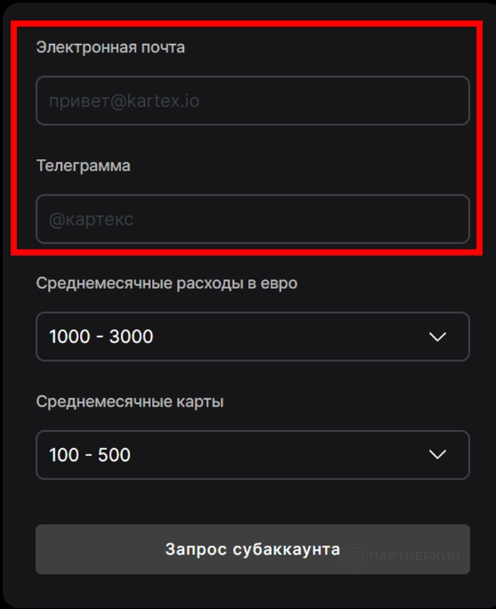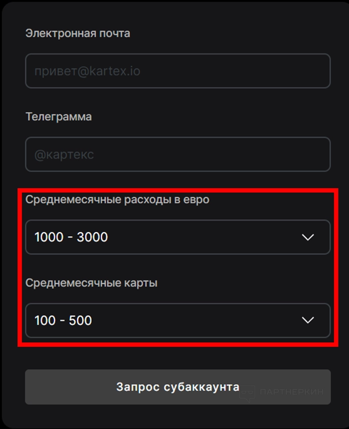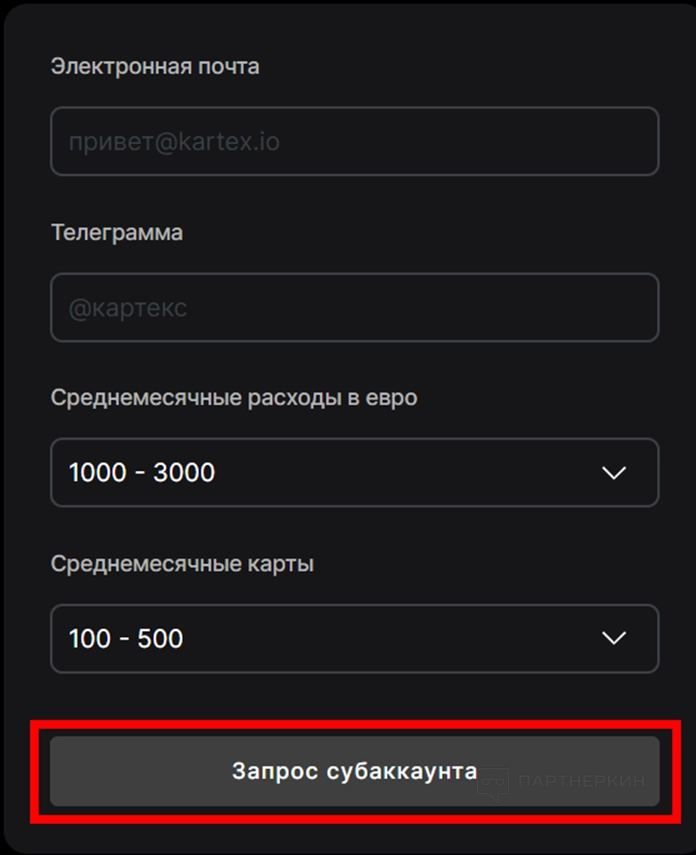 1. Нажмите на кнопку «Запрос субаккаунта».