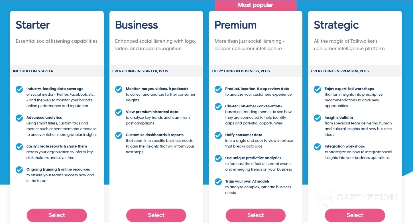 - Высокая стоимость. Стоимость может быть довольно высокой, особенно для малых и средних предприятий. Цены зависят от объема использования, количества отслеживаемых ключевых слов и других параметров, что может сделать его недоступным для некоторых бюджетов.