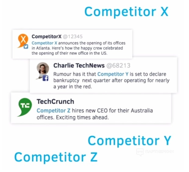 - Сравнение конкурентов . Есть возможность отслеживать активности и репутацию конкурентов, сравнивать их производительность в соцсетях, анализировать тренды и определять сильные и слабые стороны по сравнению с конкурентами.