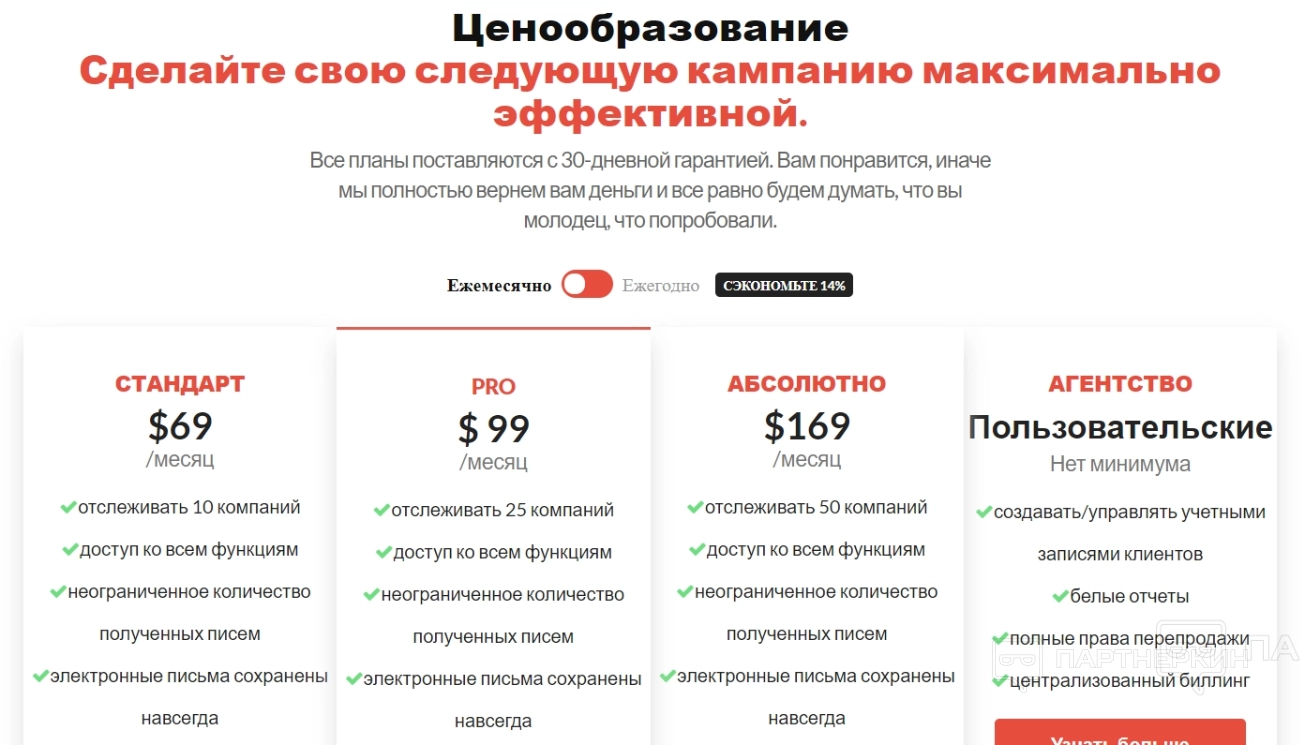 | Помогает отслеживать тенденции в рассылках — главным инструментом сервиса является как раз аналитика писем от конкурентов. Поэтому с помощью него можно легко произвести анализ, выяснить тенденции и стратегии конкурентов и по необходимости улучшить собственные на основе данных. | Проблемы с функционалом — сайт довольно непонятный, так как большинство бесплатных инструментов не работают, а линки не переводят на целевые страницы. Вероятно, это связано с ребрендингом и общим изменением возможностей сервиса. Сделать вывод о его работоспособности сложно, так как платный инструмент можно подключить без проблем. |
