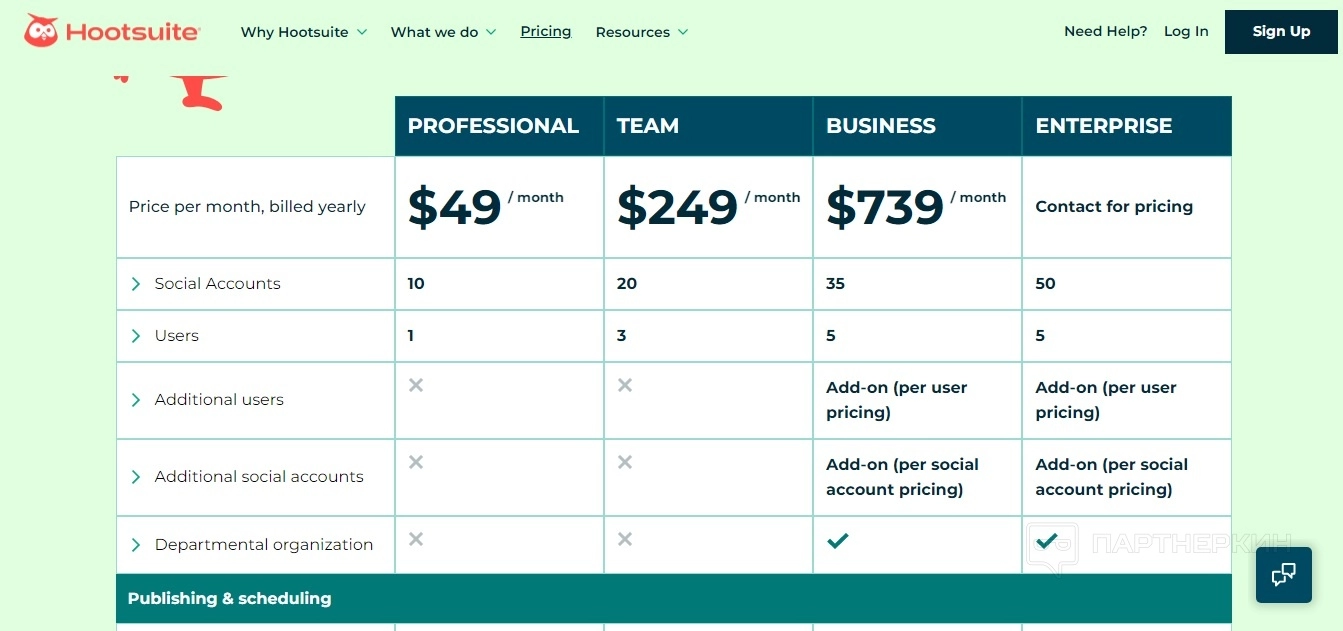 Тариф Team ($249/месяц) включает все возможности Professional и дополнительные опции: