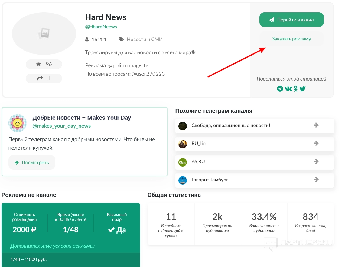 - кому писать по поводу рекламы (обычно здесь указывается автор канала);