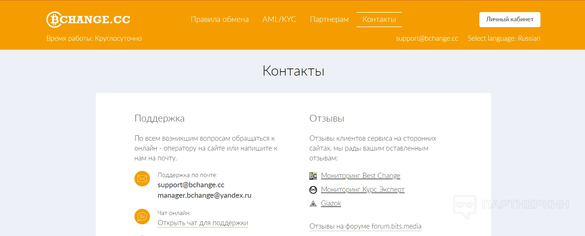 Контакты. Раздел контактов содержит все необходимые сведения для связи с поддержкой сервиса