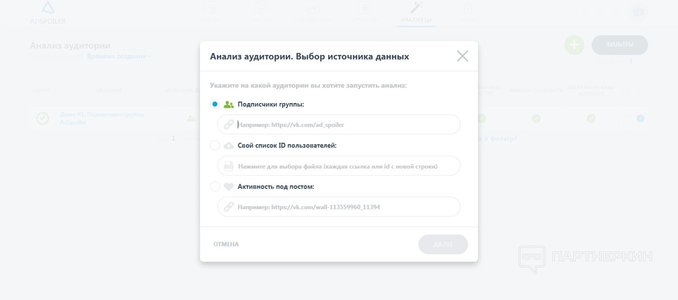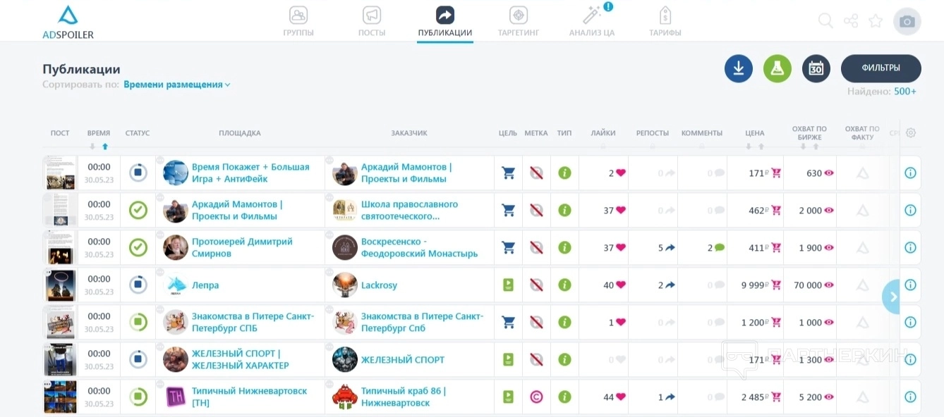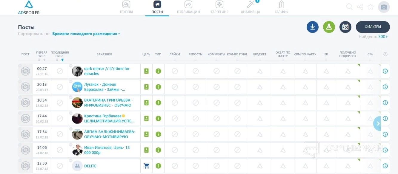 AdSpoilerможет вести отчетность и выгружать подходящую целевую аудиторию.