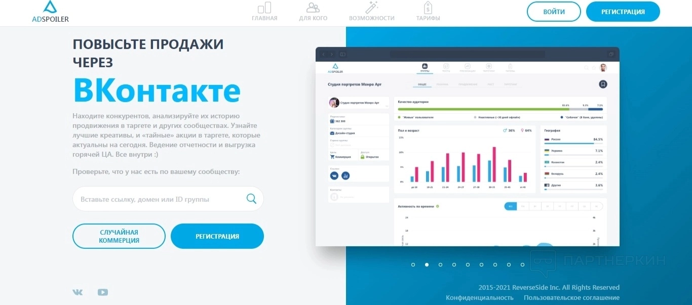 - Владельцы собственных групп (администраторы) . Благодаря инструментам сервиса, владельцы собственных групп могут сравнивать между собой конкурентов, а также подбирать наиболее эффективную площадку для рекламы своего проекта. Анализируя стратегии, креативы и другие параметры, используемые конкурентами, можно повышать популярность и собственного сообщества, заимствуя действенные способы.