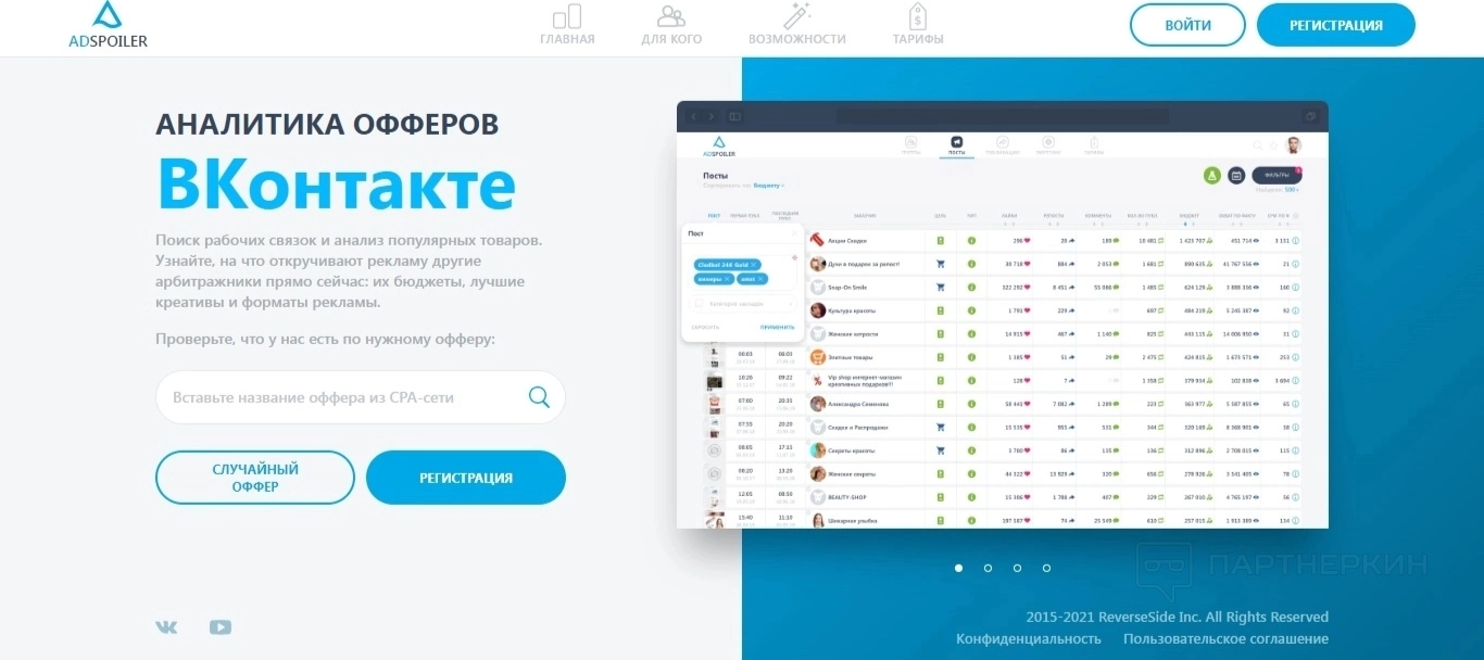 . Данной категории пользователей платформа помогает в поиске основных конкурентов в той или иной тематике, анализирует их продвижение в таргетированная рекламе (когда запущена, сколько откликов и так далее), помогает найти самые топовые креативы, которые имеют реальную обратную связь и многое другое. Помимо этого,