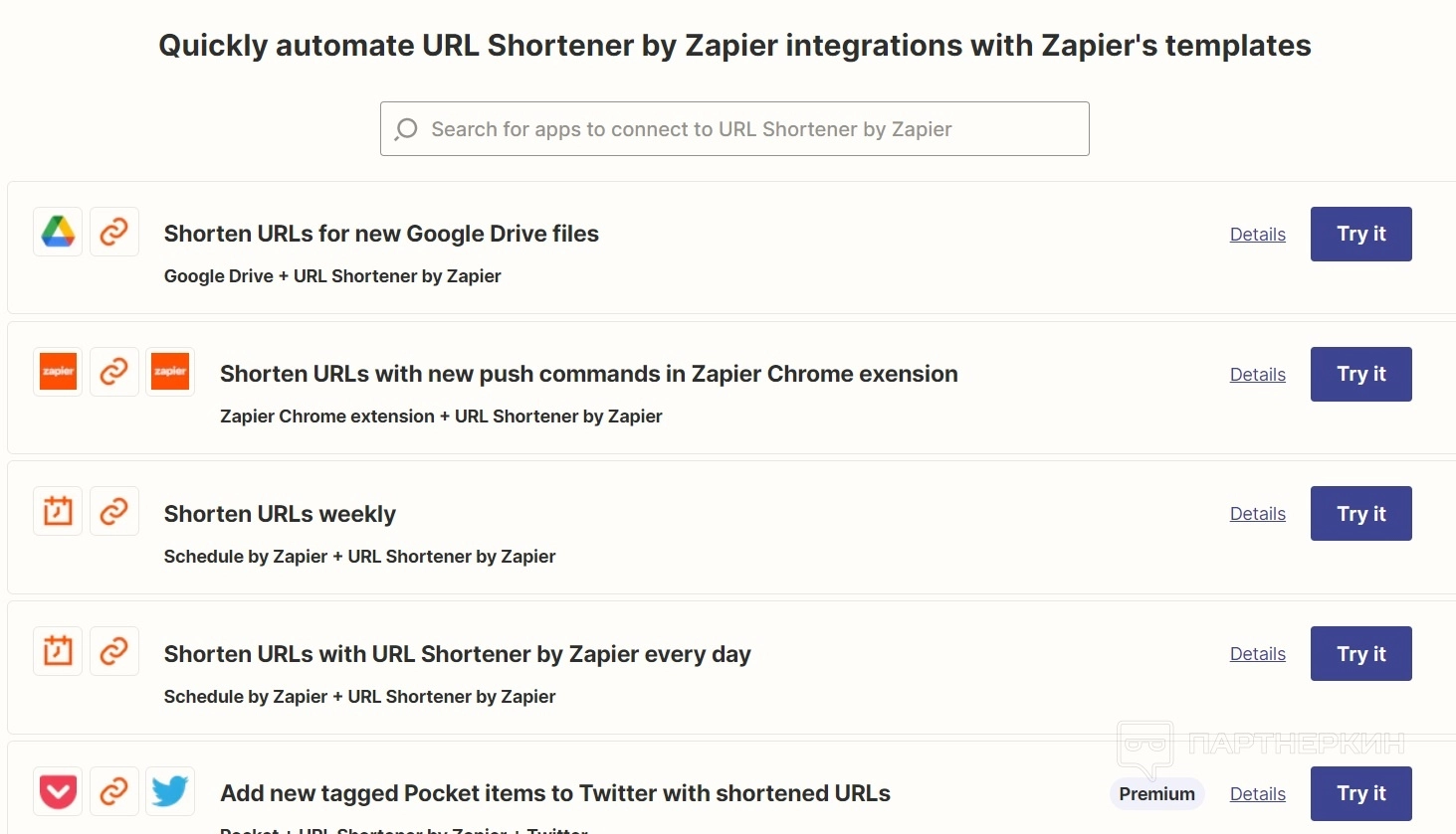 URL Shortener интегрируется с Twitter, Google Sheets, Pocket, Gmail, Airtable, ClickFunnels, Cognito Forms и другими сервисами.