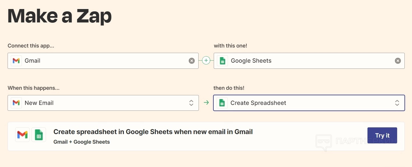 - Создать первый Zap. Для этого нужно нажать на кнопку «Make a Zap» на главной странице. Затем следует выбрать приложения, которые нужно интегрировать, определить триггер (событие), которое будет запускать автоматизацию. Например, это может быть получение нового электронного письма.
