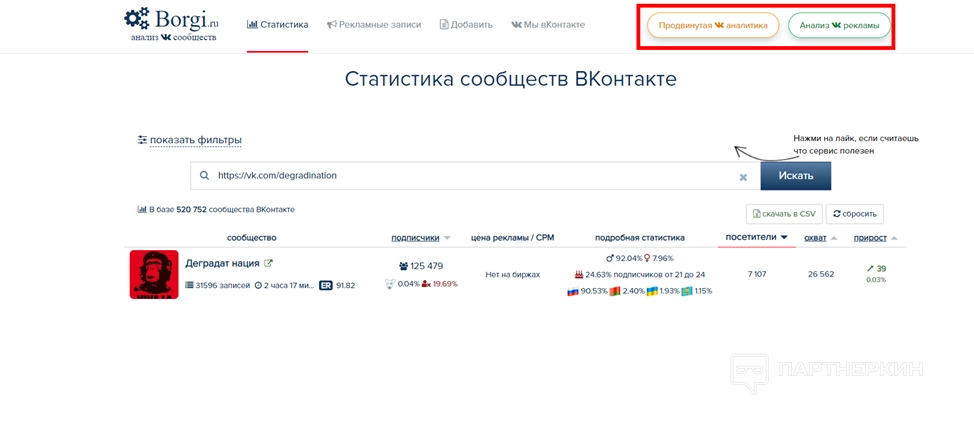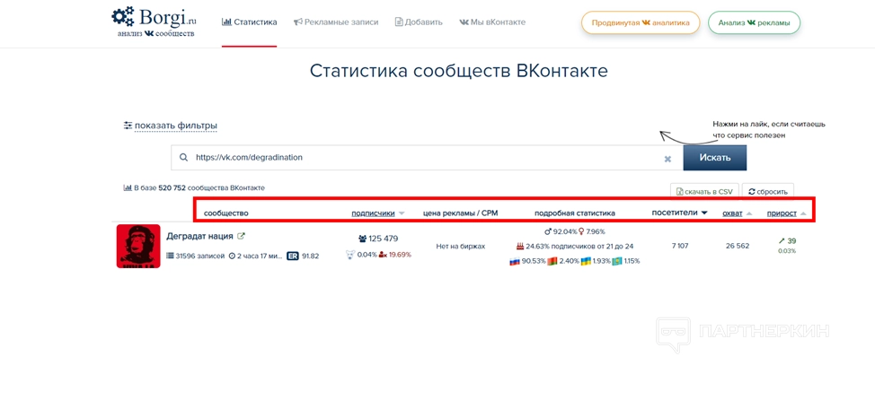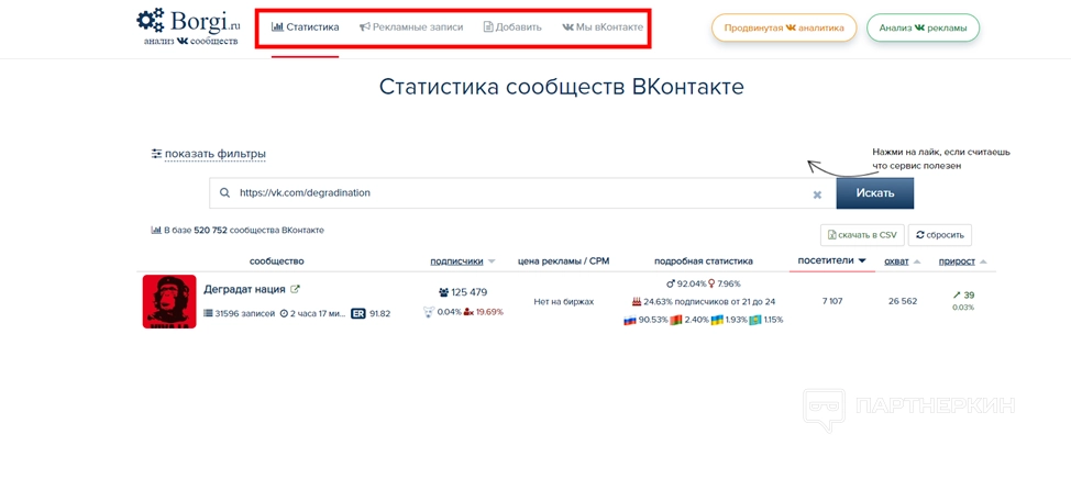 Это инструмент, который позволяет анализировать сообщества по разным метрикам. Сервис структурирует данные по всей социальной сети.
