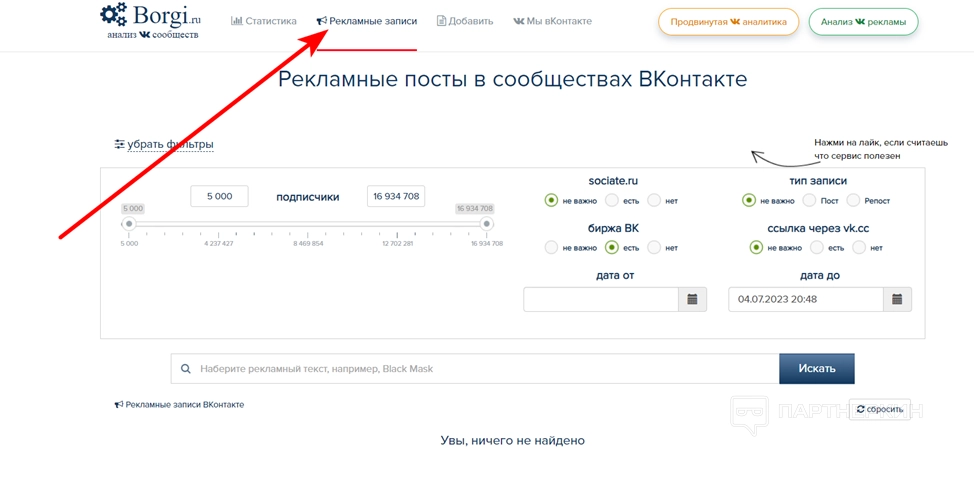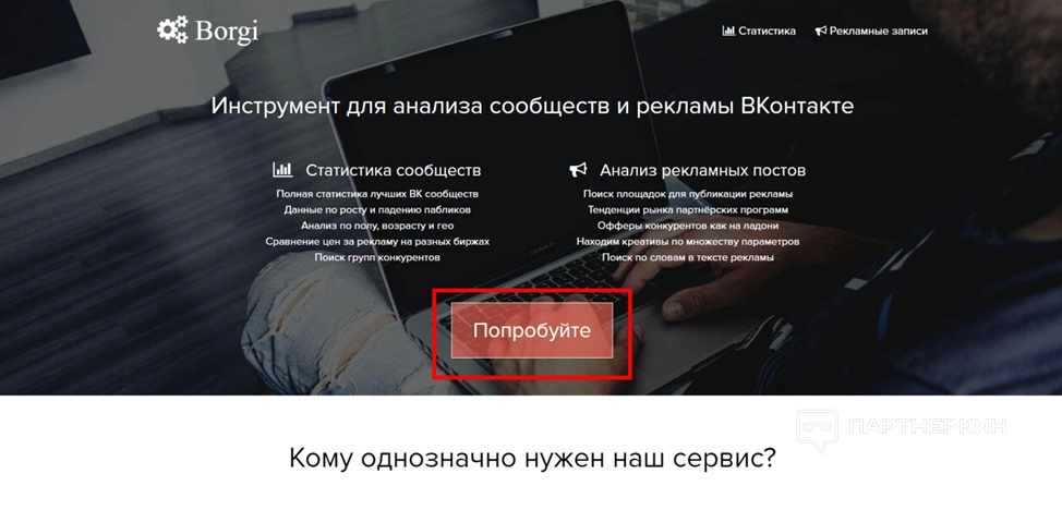 Borgi.ruвыберите один из платных сервисов. Выберите «Продвинутая аналитика» или «Анализ рекламы».