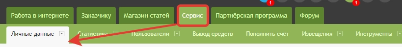 - Биржа копирайтинга . Это и есть стартовая страница личного кабинета, где пользователь найдет всю необходимую информацию о работе с сервисом. Ниже более подробно рассмотрим этот раздел.