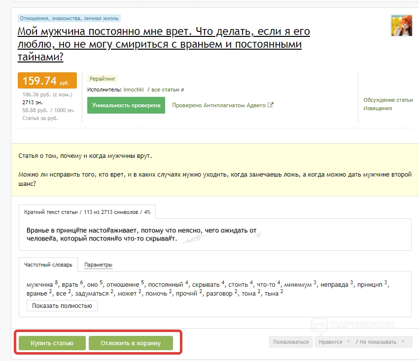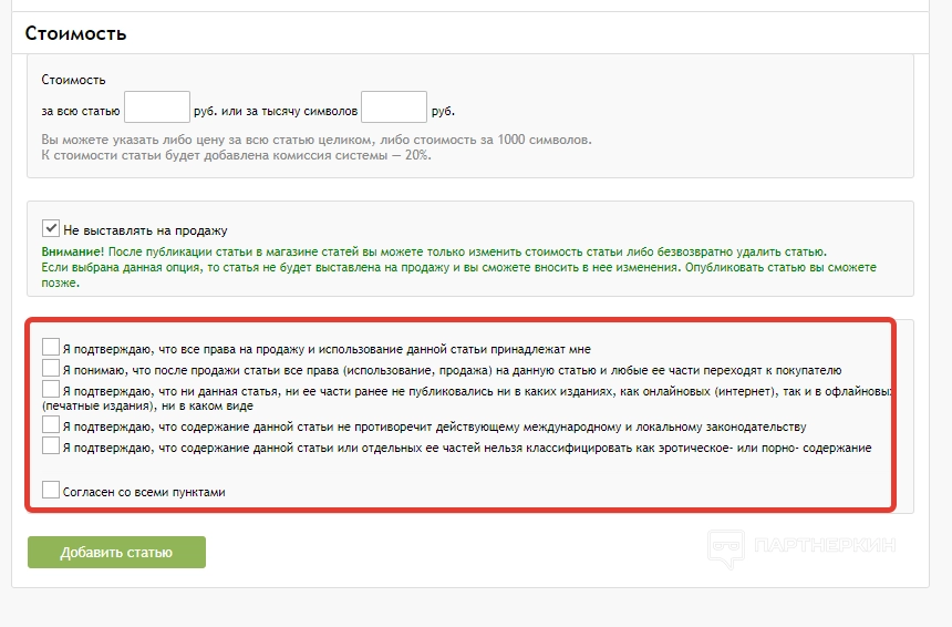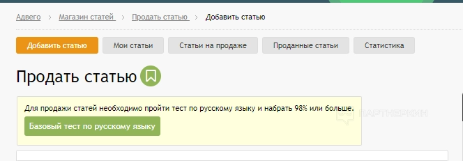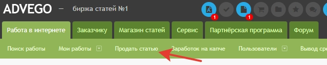 - Магазин статей . В этом разделе можно продавать и покупать текстовые материалы.