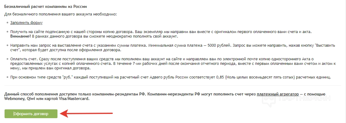 - условия — здесь прописаны условия и особенности партнерской программы;