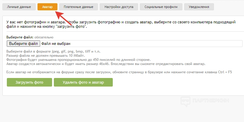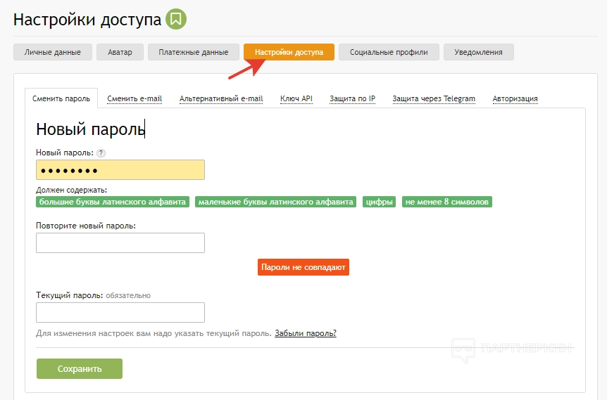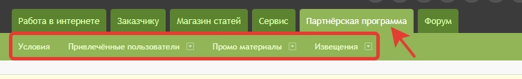 Раздел «Партнерская программа» состоит из следующих вкладок: