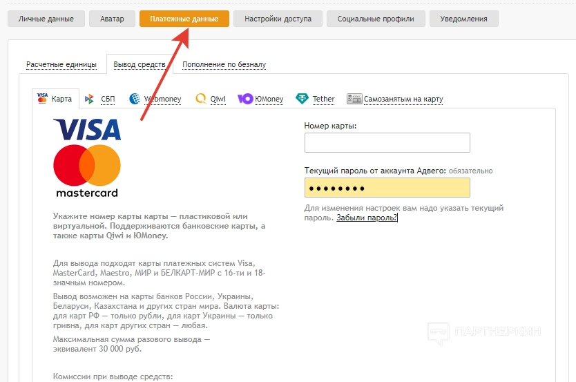 Также стоит учесть, что партнерские ссылки работают для любой страницы сайта. Реферер будет получать 25% от комиссии биржи с оборота каждого приглашенного пользователя. Вывод заработанных с партнерки средств возможен как на виртуальные, так и пластиковые карты банков любой страны.