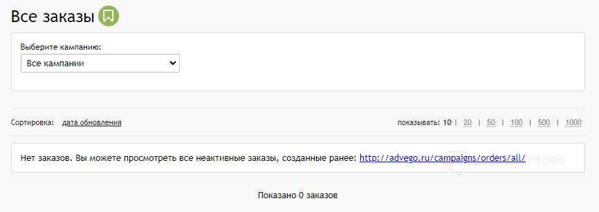 - активные заказы.