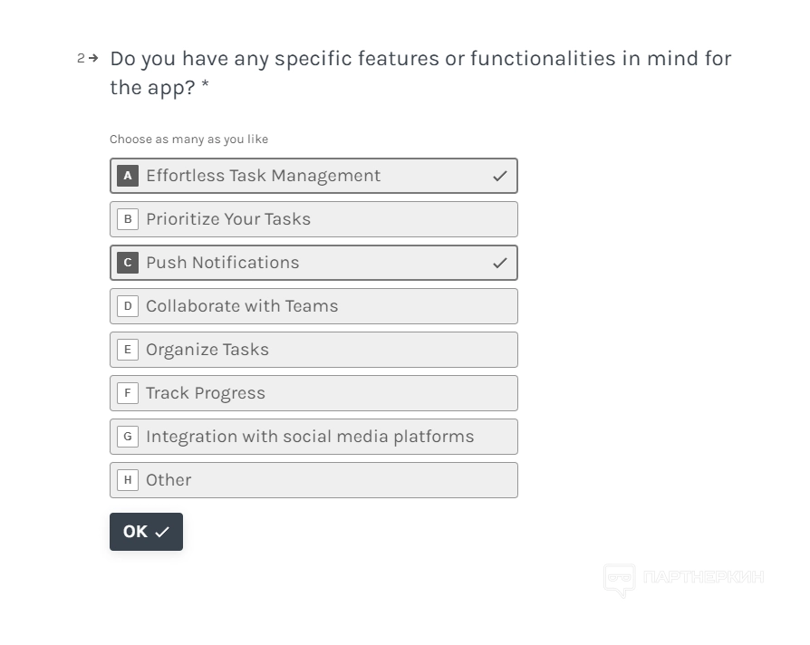 В первую очередь указывает адрес электронной почты. Далее выбираем функции, которые хотите видеть в приложении:
