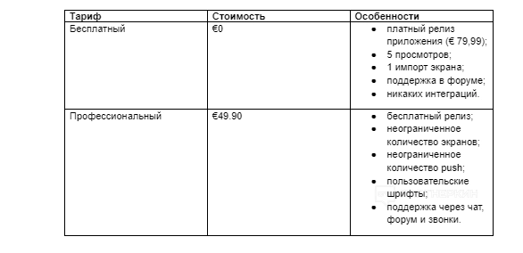 Ключевая особенность сервиса в том, что в нем можно создавать прилки, не имея навыков программирования. Разработка продукта осуществляется путем выбора и перетаскивания на главный экран заранее созданных блоков.