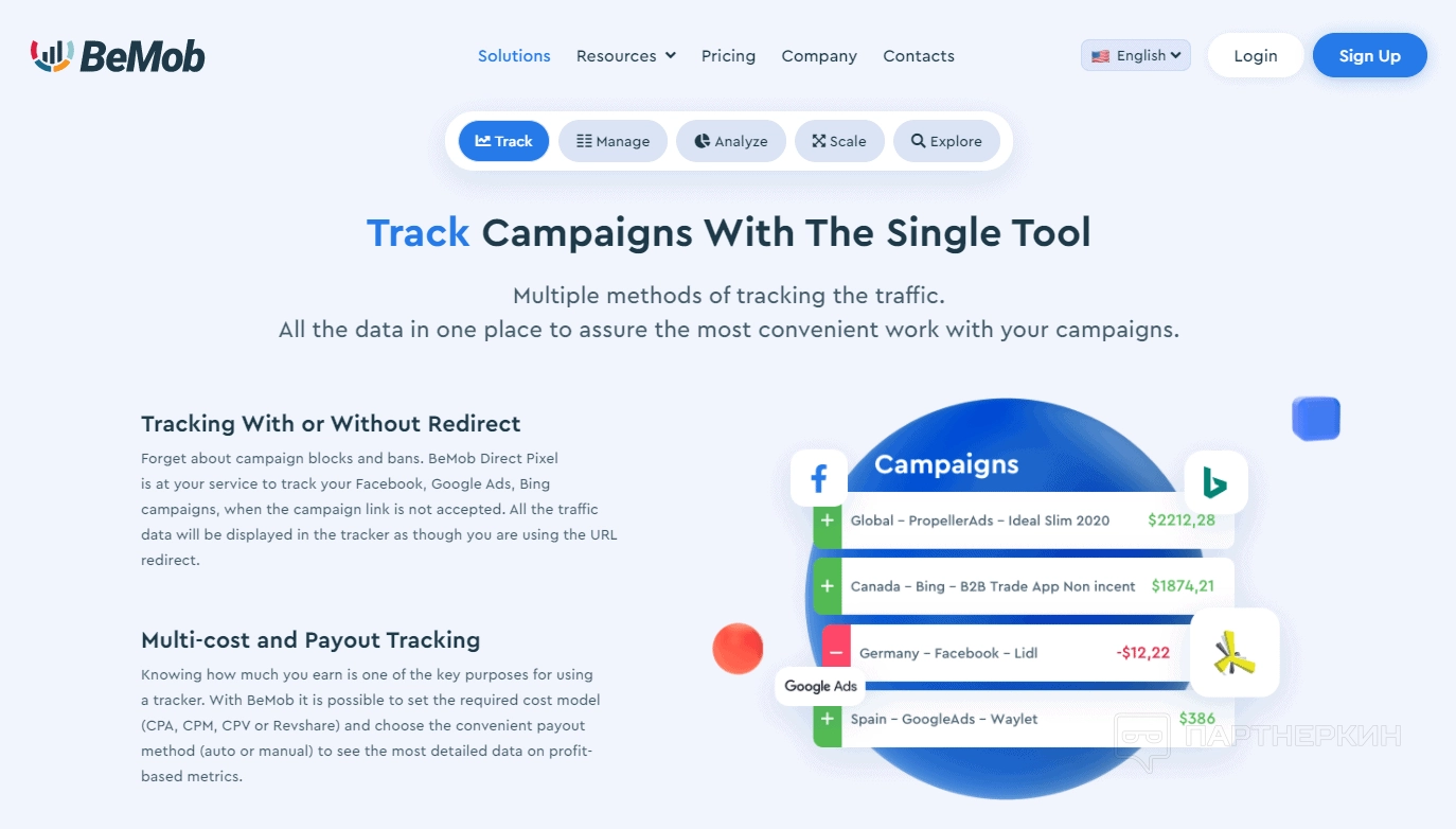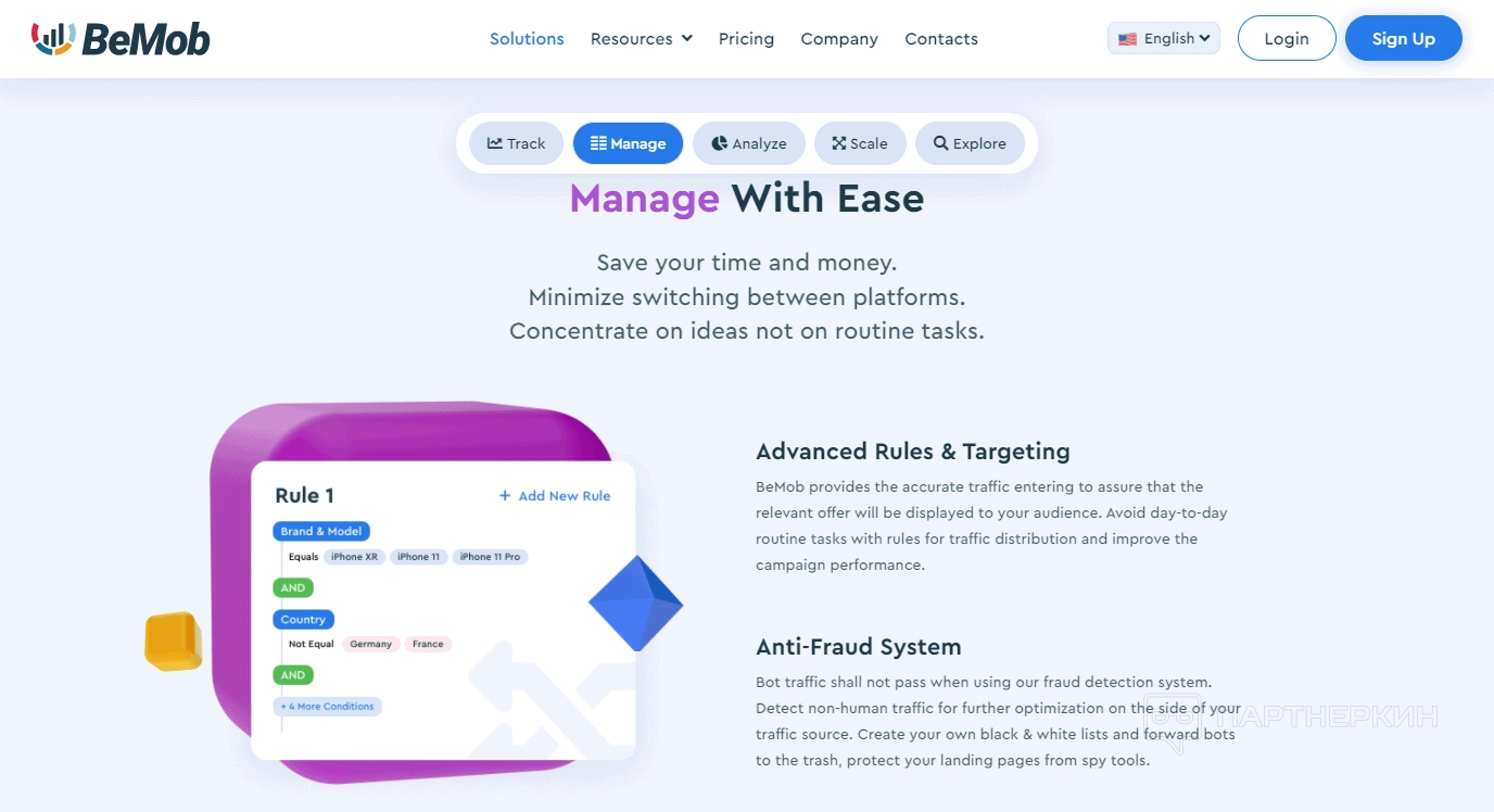 Опционально производится ротация трафика (отчасти платная функция), позволяющая распределять трафик и конверсии по всем рекламным кампаниям в соответствии с уникальными условиями.