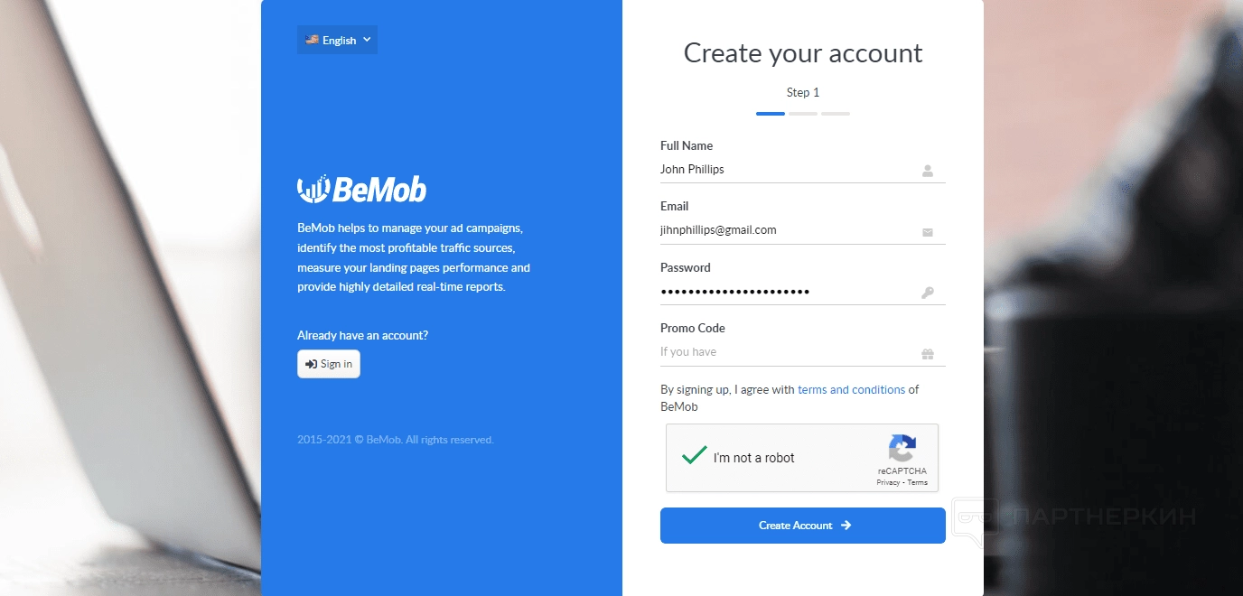 Регистрация простейшая: пользователю необходимо указать актуальные данные о себе (Имя, Фамилия, Адрес электронной почты, Телефон, Аккаунт в социальных сетях), дождаться сообщения-верификации и получить возможность выбора одного из ценовых предложений.