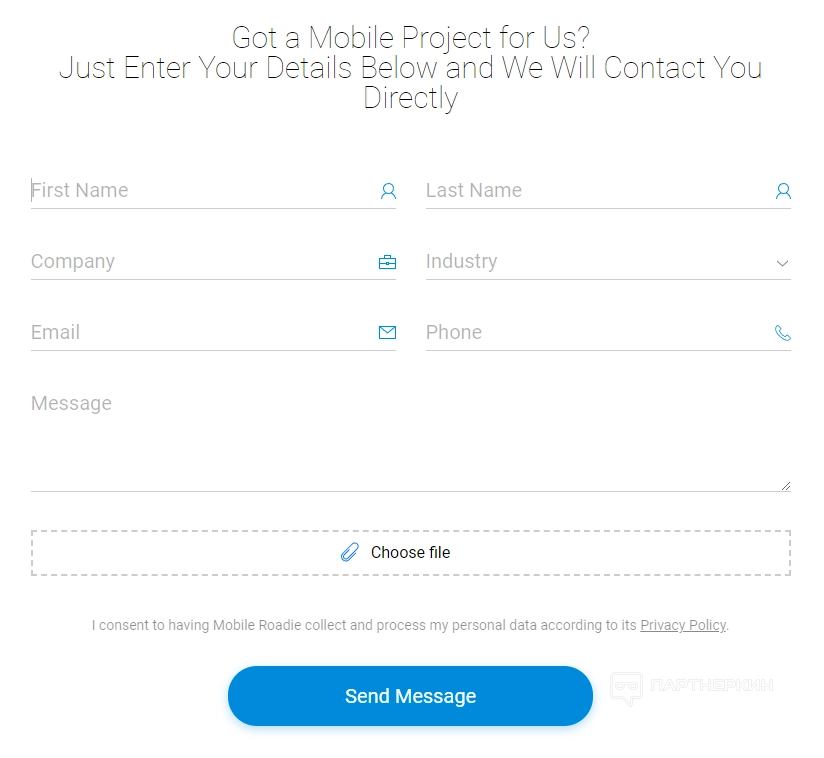 Также нужно прикрепить файл с информацией о мобильном проекте и дать согласие на обработку персональных данных.