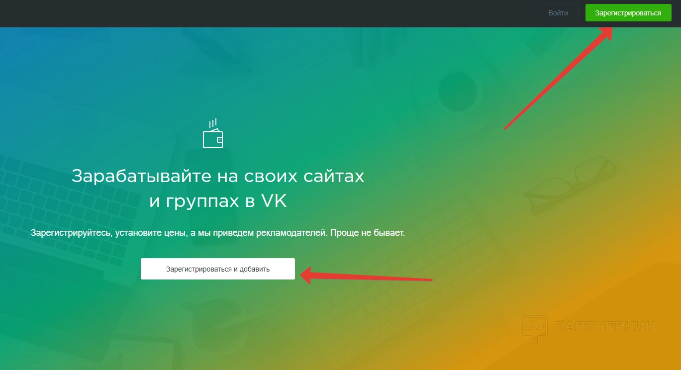 В первую очередь нужно создать учетную запись. Когда вебмастер попадет на сайт, следует кликнуть на кнопку регистрации в центре или верхнем правом углу экрана.