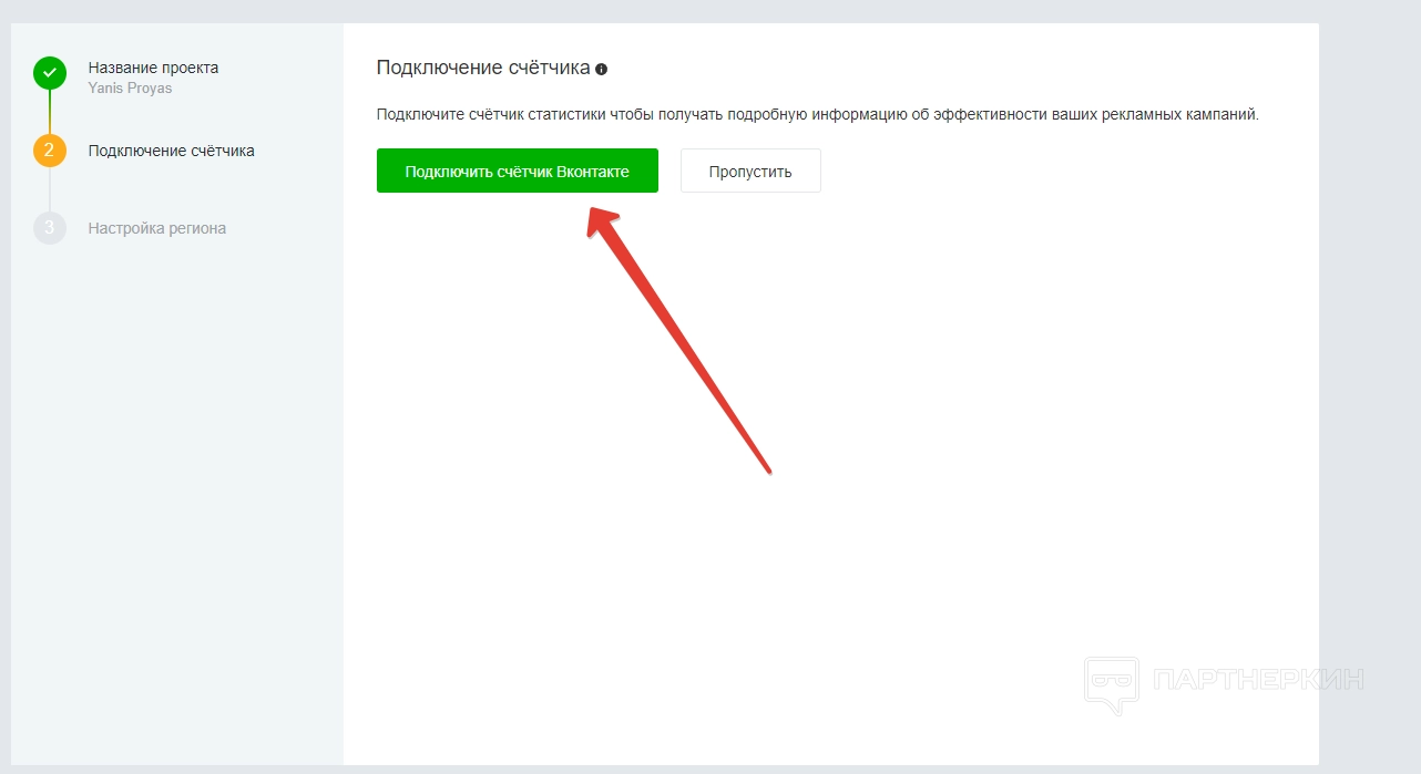 На следующем этапе подключаем счетчик, который позволит получать подробную информацию об эффективности рекламных кампаний.