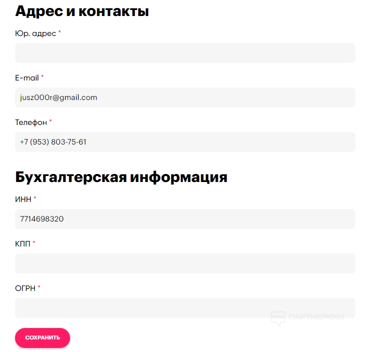 На заключительном шаге потребуется ввести адрес и контакты, а также заполнить бухгалтерскую информацию.