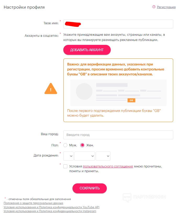 Для завершения регистрации потребуется заполнить форму. В ней нужно указать:
