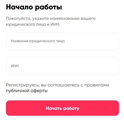 На новой странице пользователю нужно ввести название юридического лица, ИНН и нажать «Начать работу».