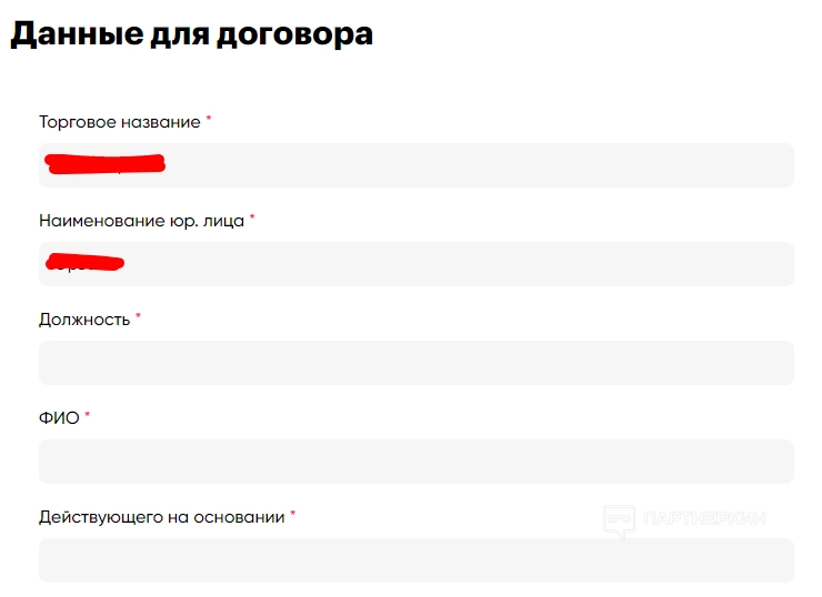 Далее — необходимо предоставить данные для договора: