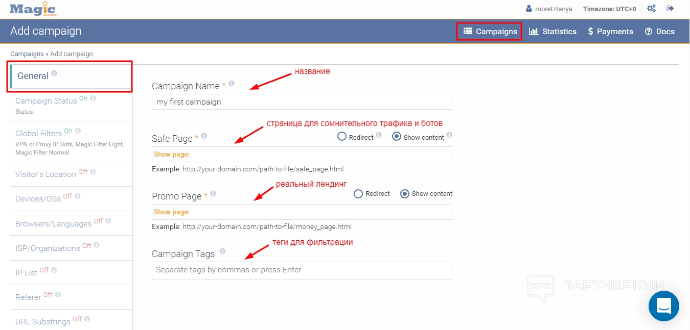 - Safe Page – URL-адрес страницы, на которую будет направляться трафик;