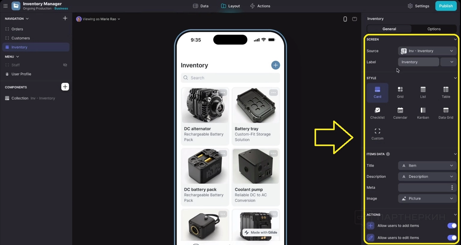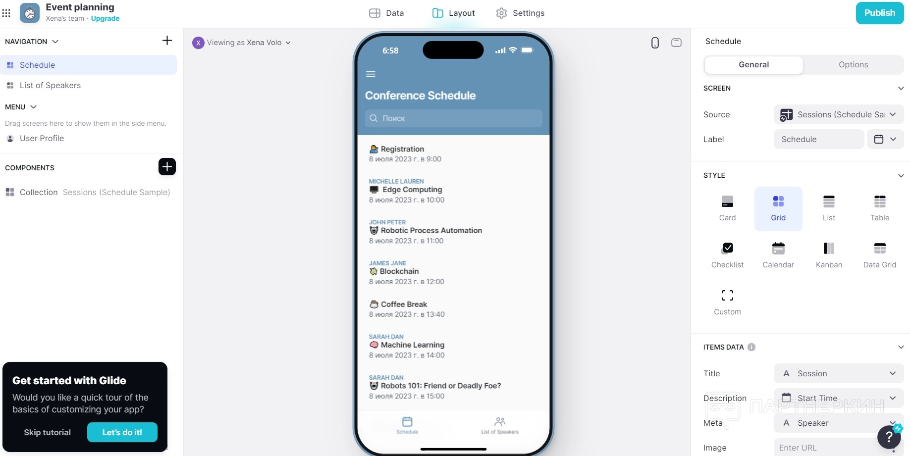 Так как Glide позволяет создать программный продукт без знания кода, бизнес или предприниматель может сэкономить на аутсорсинге, привлечении или найме IT-специалистов.