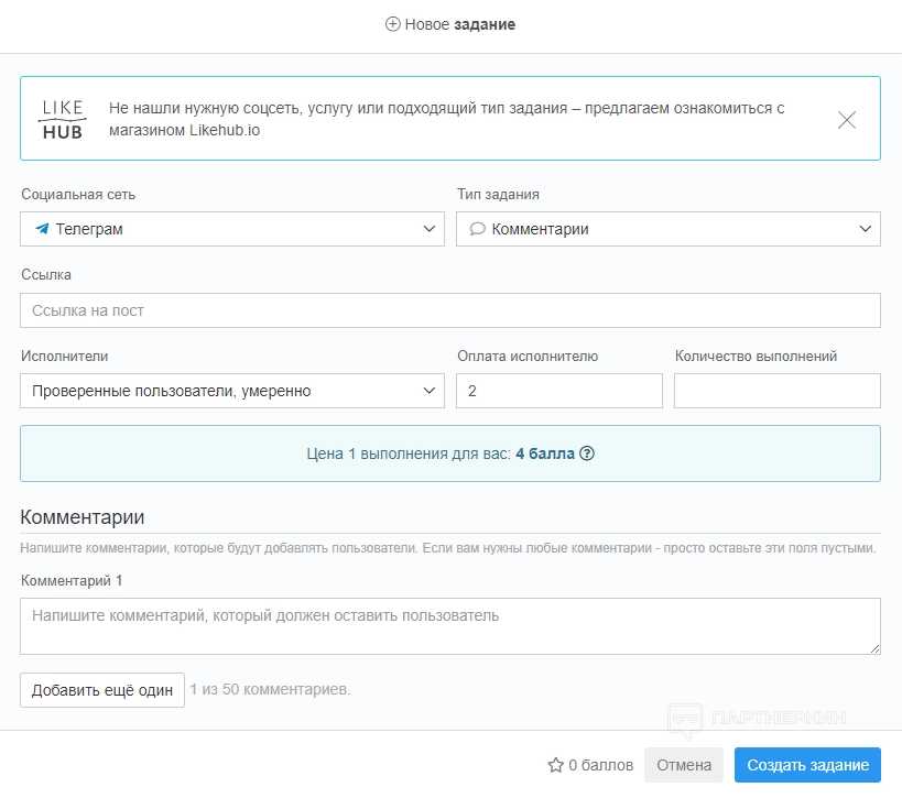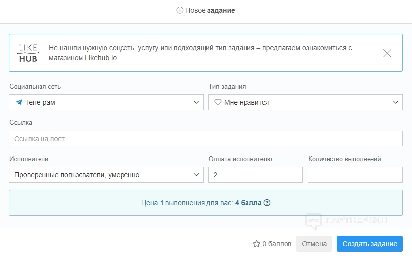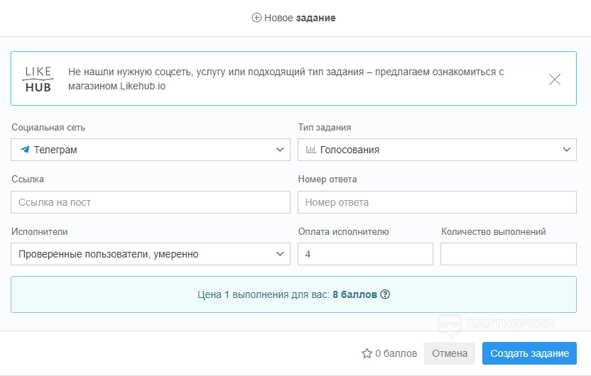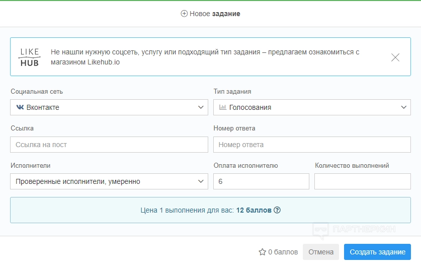 - Проверенные исполнители (быстро). Цена: от 12 баллов. Количество: 1 — 500 000.