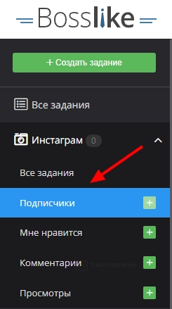 - В личном кабинете Bosslike открыть раздел «Инстаграм»*.