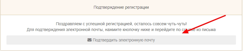 После заполнения полей — нажать «Зарегистрироваться». Пользователя перенаправит на страницу, где нужно кликнуть «Подтвердить электронную почту».