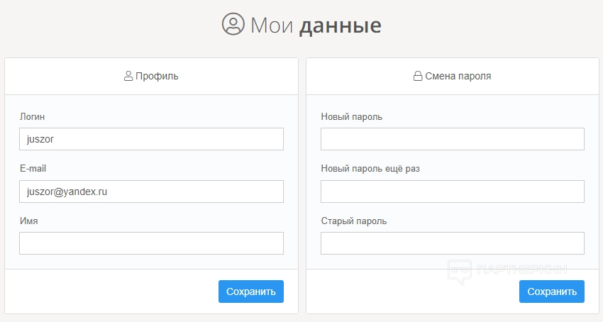 На этой странице можно изменить логин, адрес электронной почты, имя и пароль.
