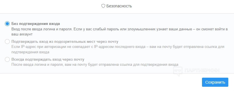 - Всегда подтверждать вход через почту. После ввода логина и пароля на почту пользователя будет отправлена ссылка для подтверждения входа.