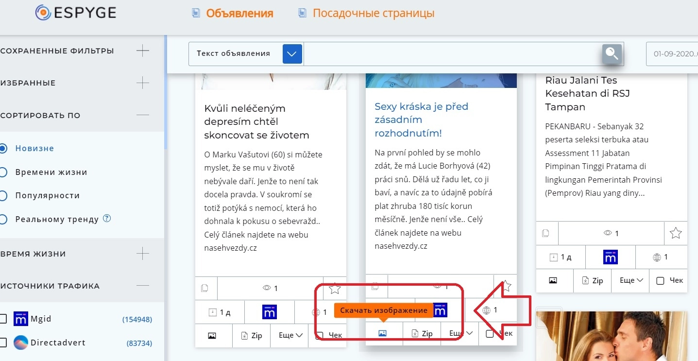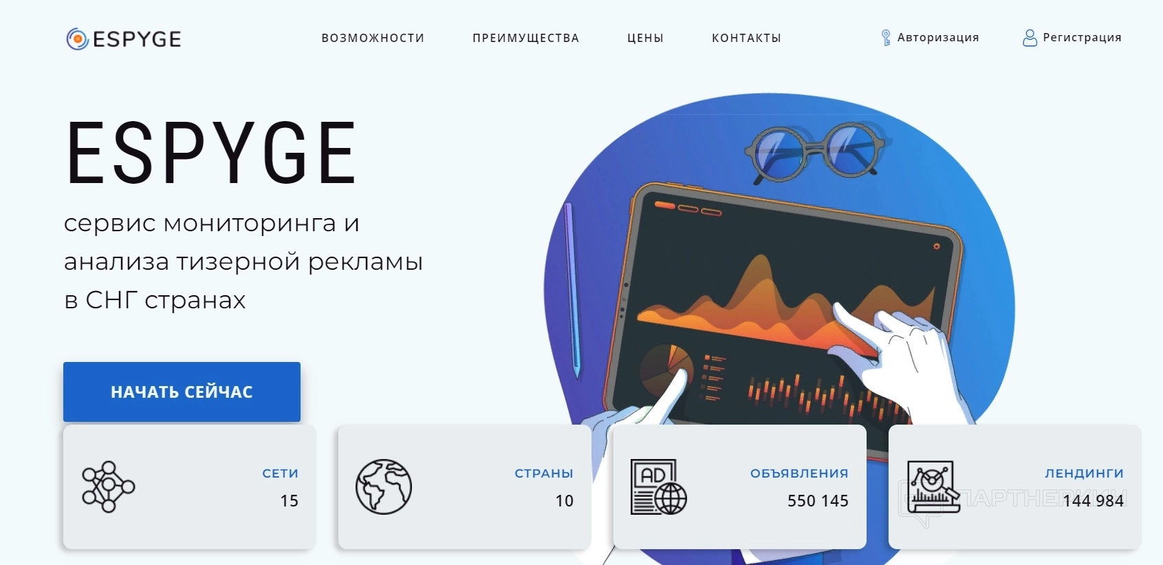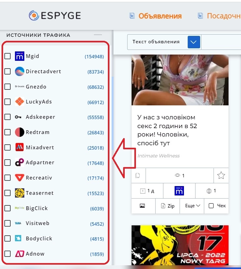 Espygeдает доступ к креативам и лендингам из 15 тизерных рекламных сетей: в базе более 549 000 объявлений и 144 000 лендингов, данные ежедневно пополняются.
