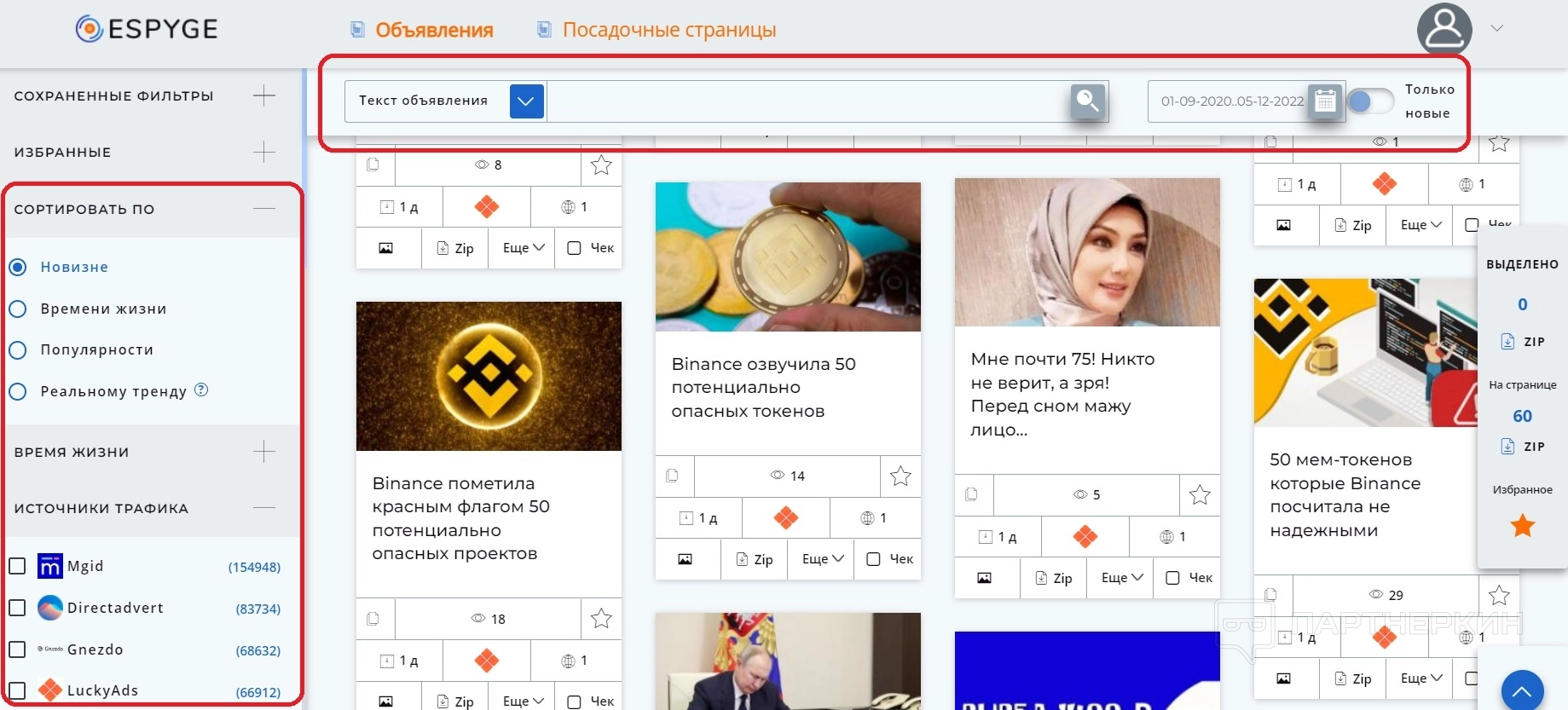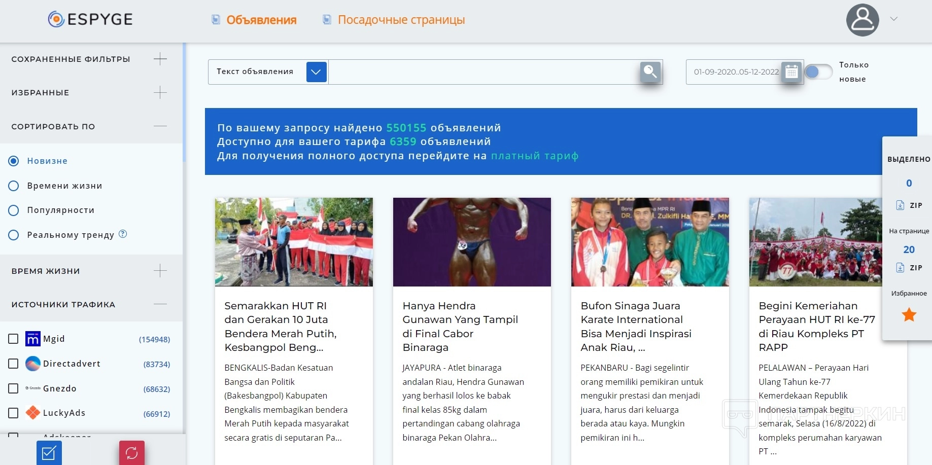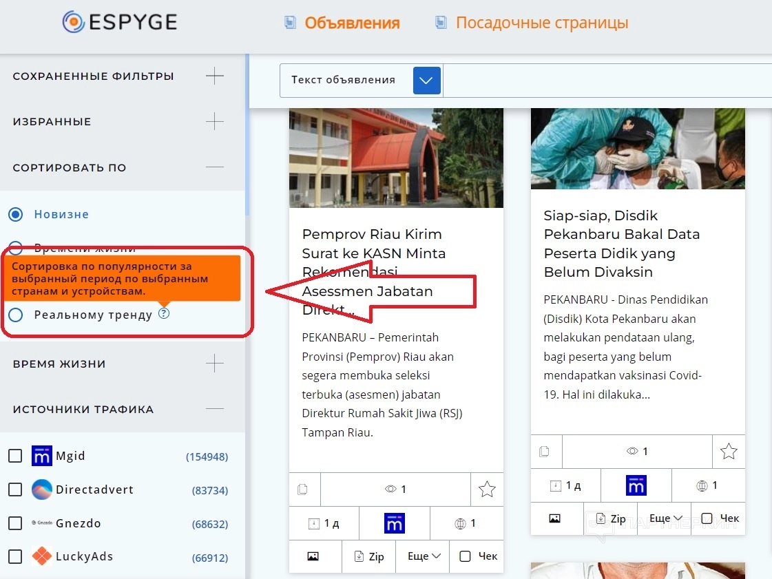 Espygeдает доступ к креативам и лендингам из 15 тизерных рекламных сетей: в базе более 549 000 объявлений и 144 000 лендингов, данные ежедневно пополняются.