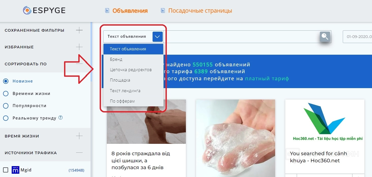 На платных тарифах становится доступна полная база креативов, транзитных страниц и лендингов, все фильтры — по источнику трафика, странам, типу устройства, браузеру, сортировка по новизне, времени жизни, популярности, реальному тренду, скачивание рекламных объявлений и посадочных страниц.