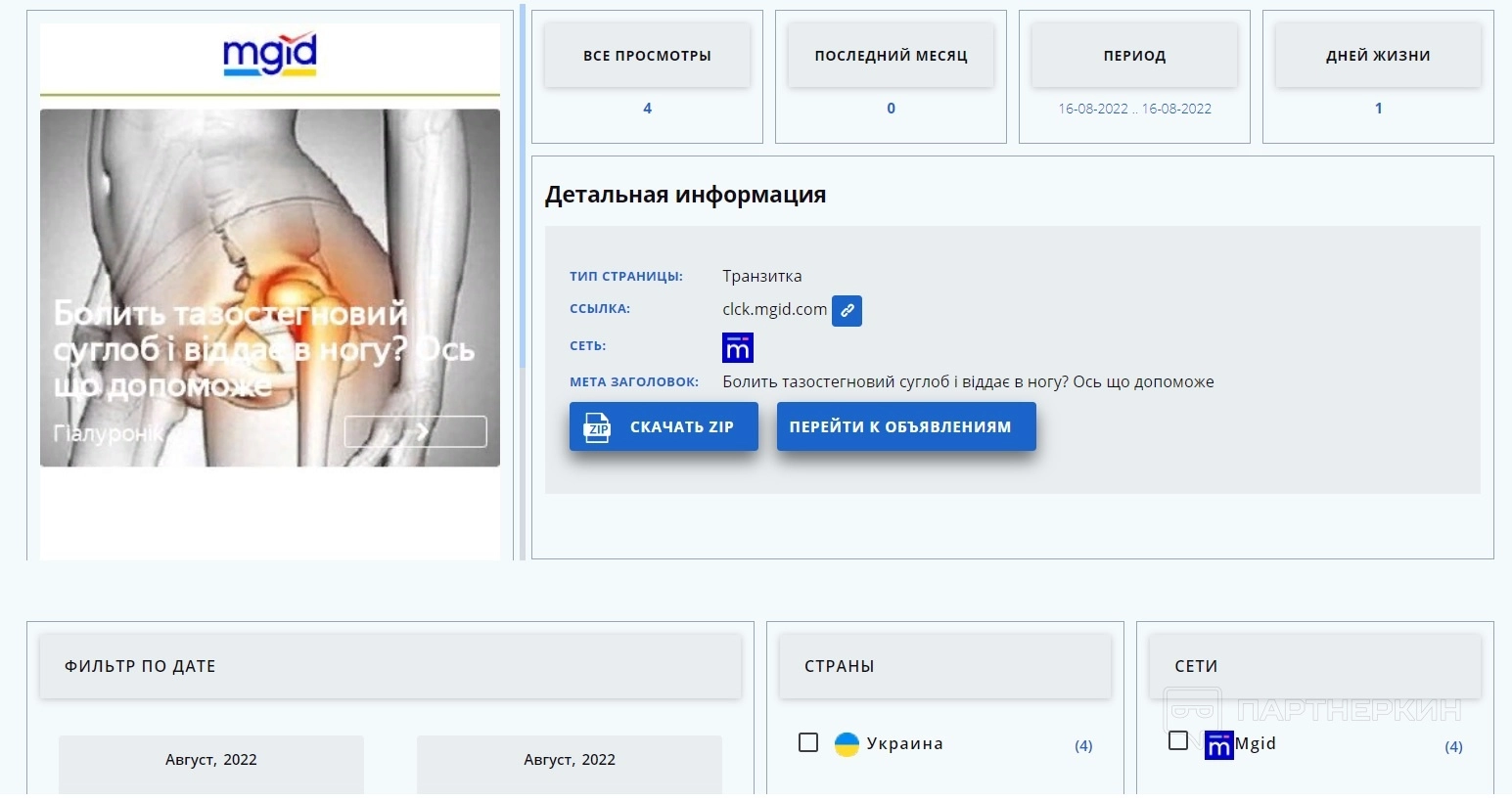 Каждый креатив содержит информацию: количество показов, время открута кампании, источник трафика, гео, устройства. Также есть кнопка для загрузки объявления в обычном исходном формате или zip файле. Чтобы получить более детальную статистику, нужно кликнуть на объявление.