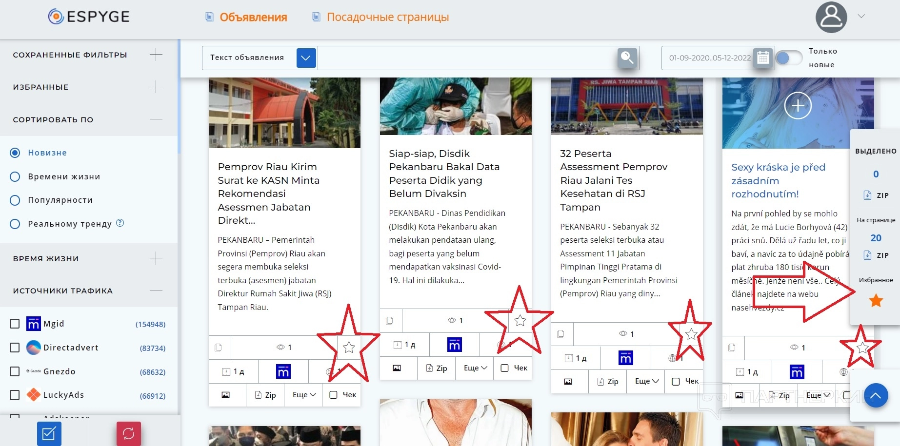 Каждое объявление или лендинг можно скачивать в один клик. Понравившиеся креативы можно сохранять в избранном, отслеживать прогресс по просмотрам, по длительности открутки рекламной кампании, изучать детальную статистику.